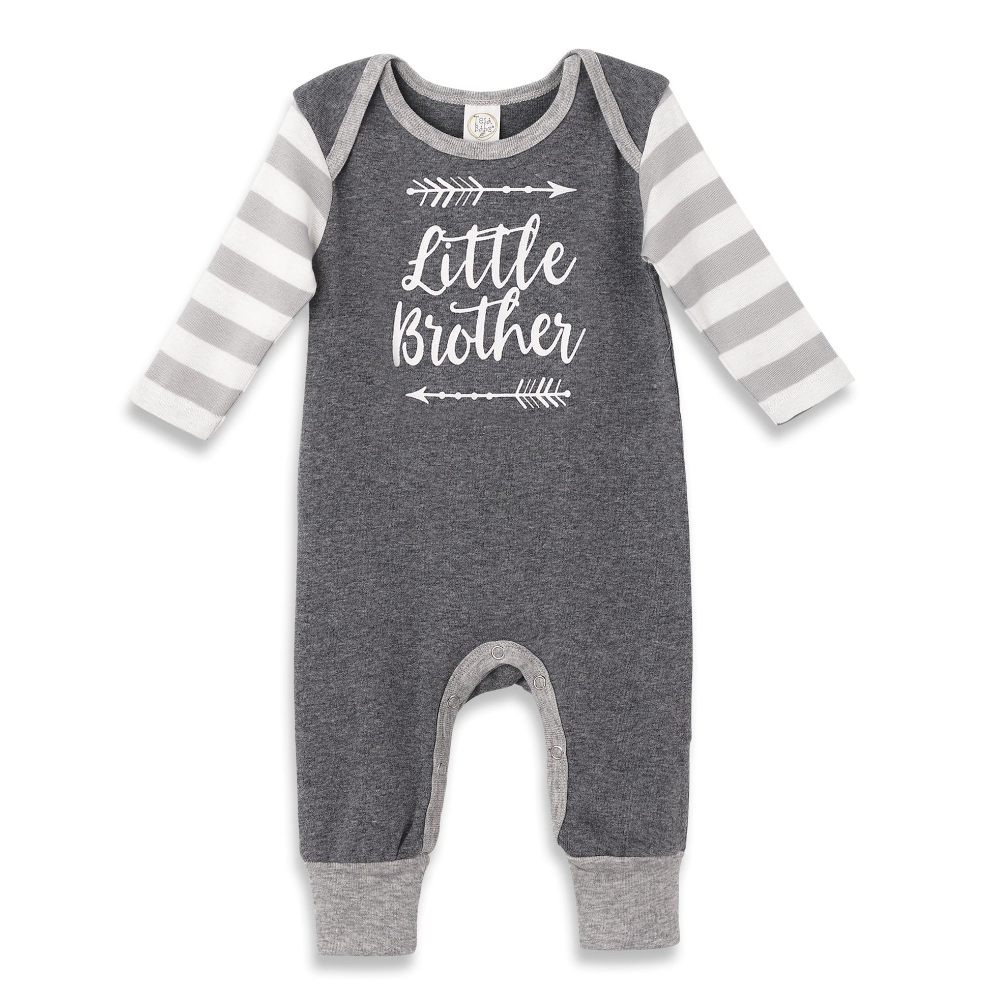 Introduce your little one to the world in style with this cool and cozy "Little Brother" romper! Crafted with oh-so-gentle 100% cotton, it features a sleek grey stripe plus soft heather grey trim. Easy-peasy snaps underneath make it a breeze to change diapers. Get your tiny sidekick ready for a world of adventure—order today!
