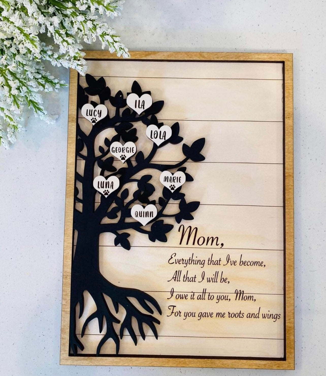 Personalized Family Tree, Keepsake Wooden Wall Art, Mothers Day Gift for Her