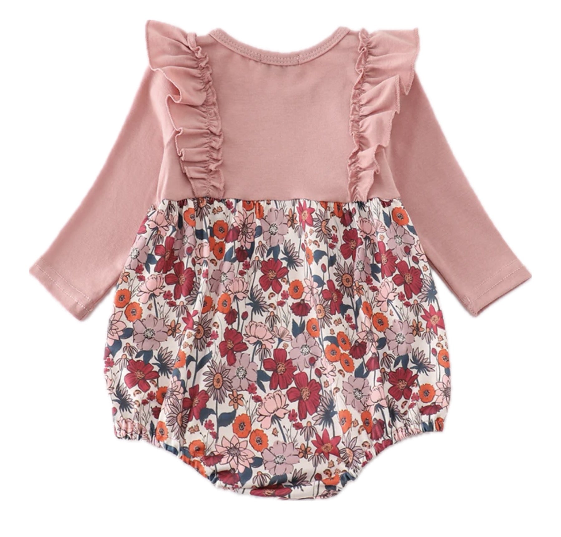 Pink Floral Girl Ruffle Bubble
