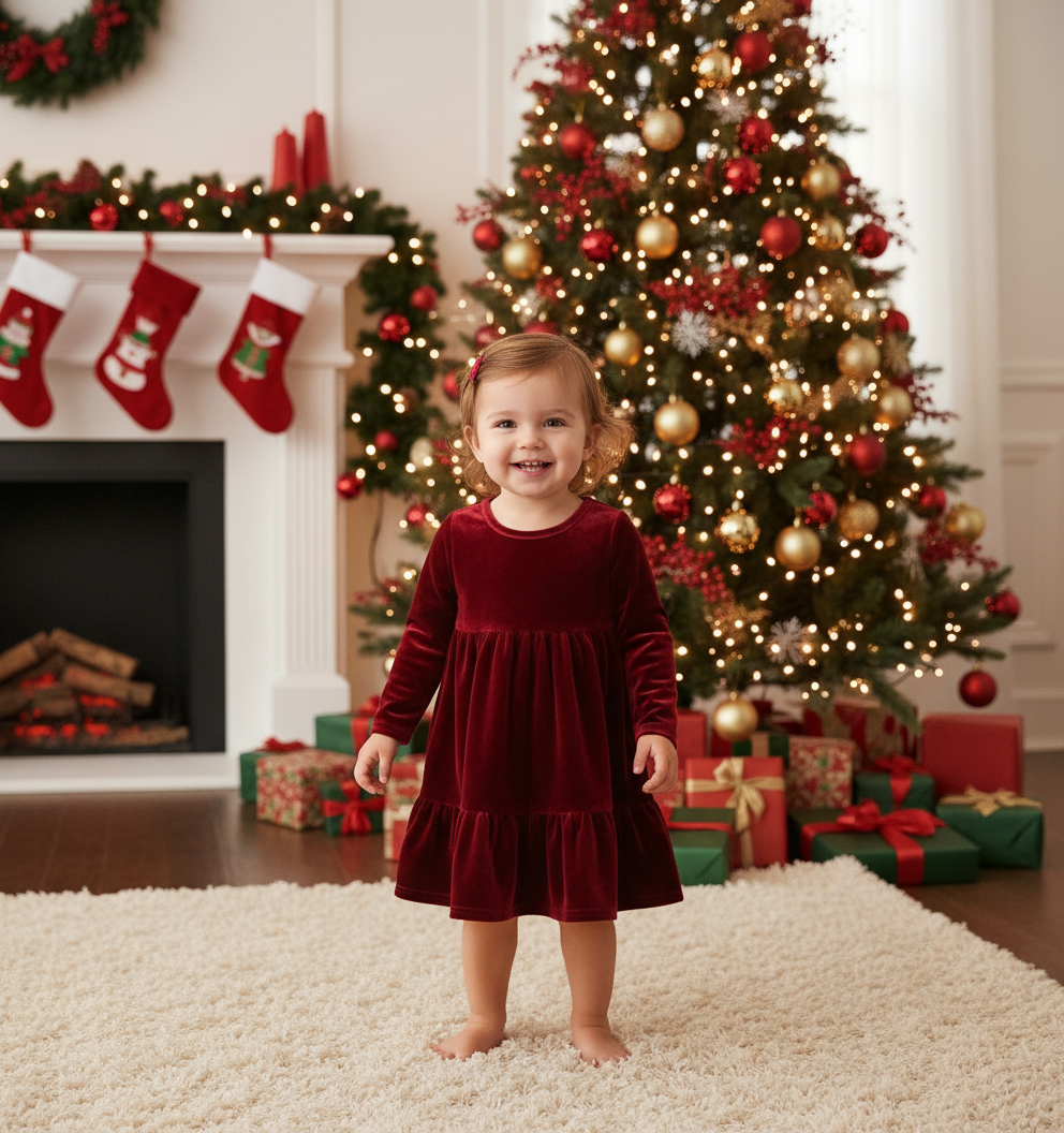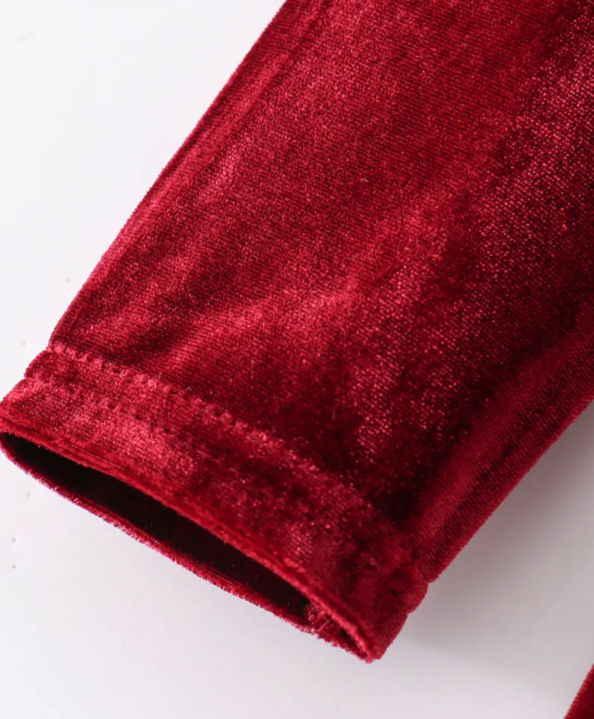 Get ready to turn heads in this deep red velvet tiered ruffle dress! With its playful tiered ruffle design, this dress adds a touch of fun to any outfit. Made from luxurious velvet fabric, you'll feel like royalty while staying on-trend. Perfect for any occasion.